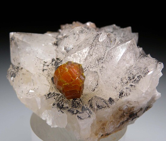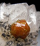 Single cluster of Mimetite var. Campylite on a cluster of Quartz crystals. The Mimetite is 9mm wide. These are rare to find on Quartz crystals.