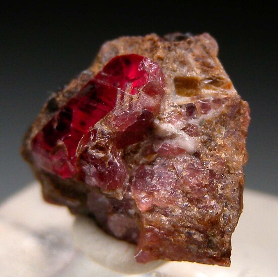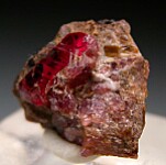 Pink Pyroxmangite with a crystal of deep vivid red color. Ex. Hori, Luis Menezes collections.