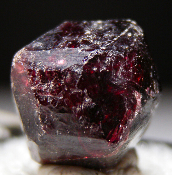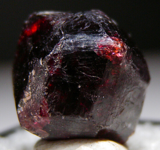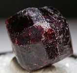 Single Almandine garnet crystal from Brazil. Sharp, well crystallized specimen that shows bright red transparency when backlit. Complete and undamaged. Ex. Dennis Ewell collection.