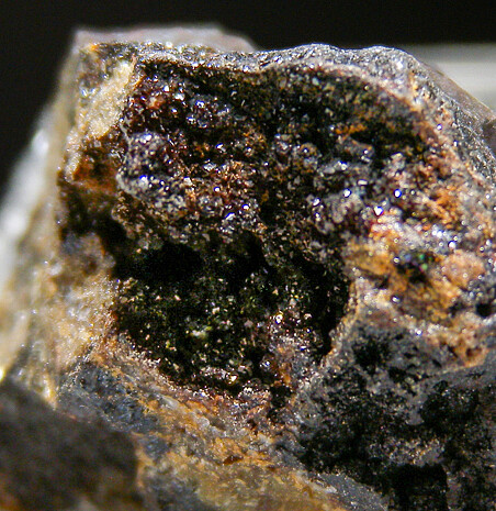 Sparkling brown crystals of Siderite lining a vug in matrix. Neat locality piece from Bisbee to add to a Siderite or Bisbee suite. Ex. Dennis Ewell collection.