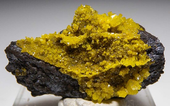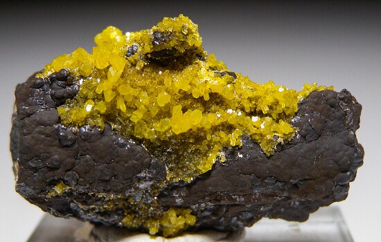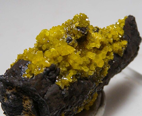 Bright yellow Pyromorphite crystals on matrix from Broken Hill. Good crystals on both sides of matrix. These yellow crystals are much less common than the brown Pyromorphite from Broken Hill.
