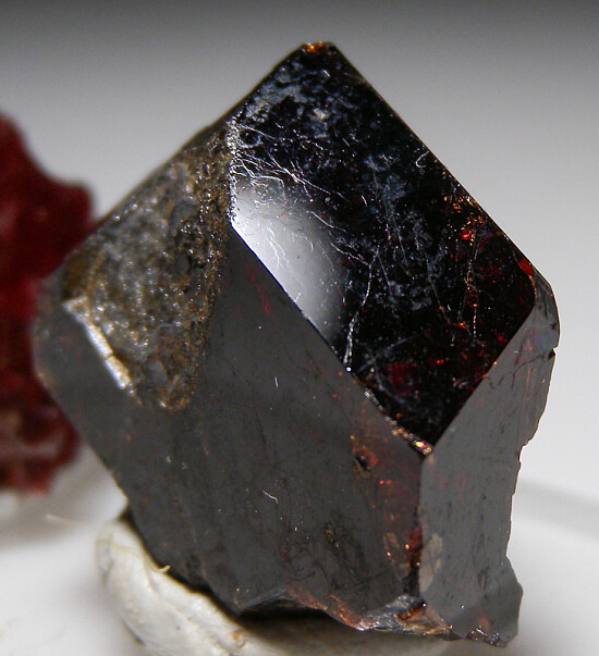 Two classic Broken Hill specimens including a red Rhodonite crystal (1.8cm) and Spessartine crystal (2.0cm).