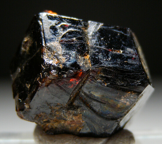 Complete deep red Spessartine crystal from Broken Hill. Two crystals intergrown, complete all around with flat crystal faces on all sides.