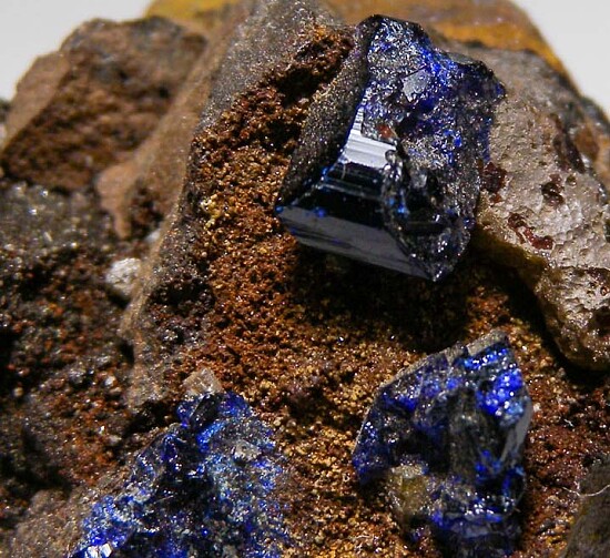 Uncommon specimen of Azurite from Broken Hill. There also appears to by a Chlorargyrite crystal present.