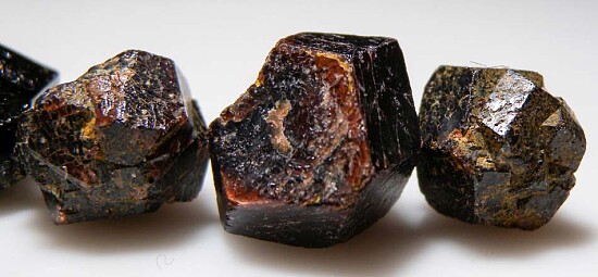 Deep red Spessartine crystals from Broken Hill. This is a lot of 7 crystals, each with deep red color. Valued at about $10/garnet.