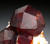 Well formed, large Spessartine crystals on Feldspar. A highly aesthetic example from a recent find of larger than normal sized Spessartine. Main crystal is 1.5cm wide and undamaged.