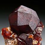 Well formed, large Spessartine crystals on Feldspar. A highly aesthetic example from a recent find of larger than normal sized Spessartine. Main crystal is 1.5cm wide and undamaged.
