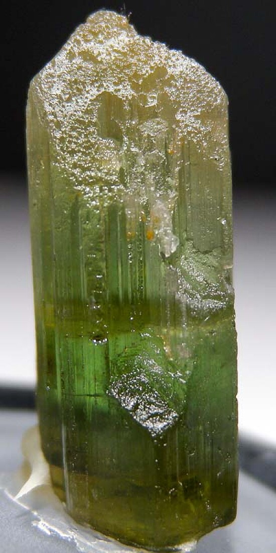 Complete, well terminated green Tourmaline from Nigeria. Nigerian Tourmaline are always popular and less common on the market. This one is nice and gemmy, complete all around. Valued at $150.