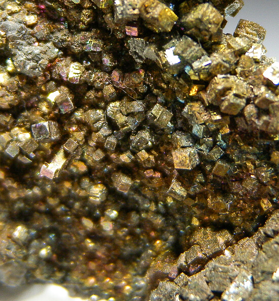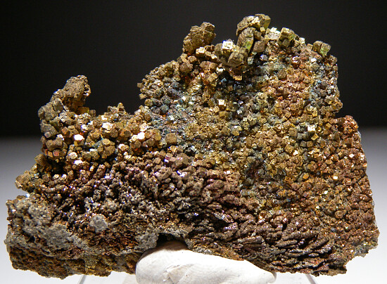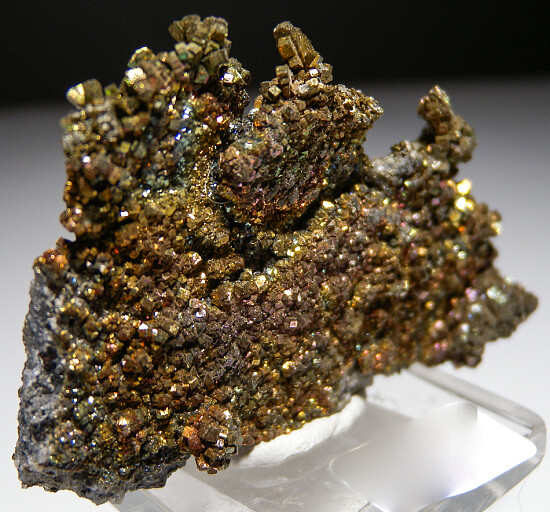 Crystals of golden irridescent Pyrite covering both sides of matrix. Bright and colorful from an old Australian collection of mostly Broken Hill specimens.