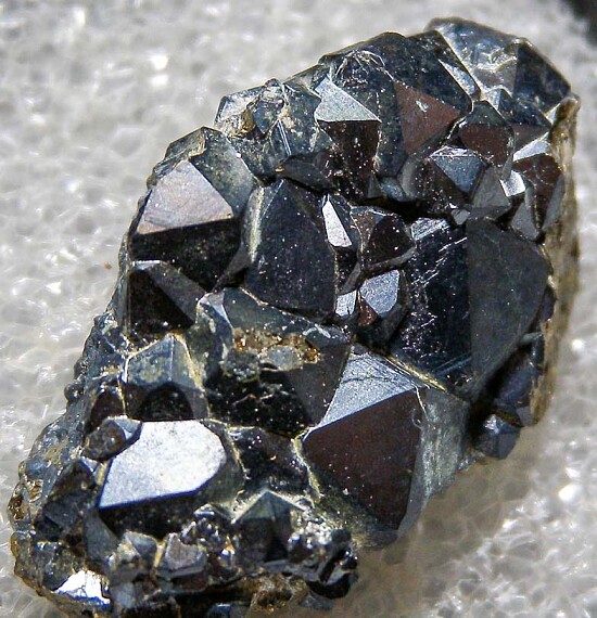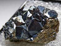 Chalcocite coating/replacing octahedral Pyrite crystals. Large crystal is 5mm. Ex. Dennis Ewell collection.