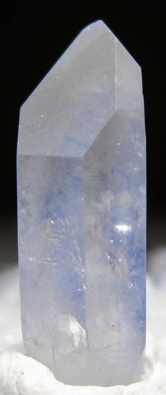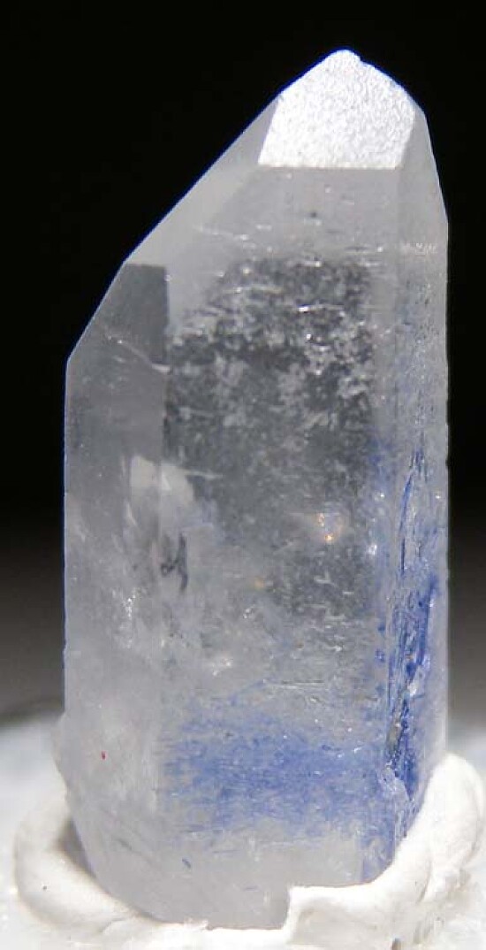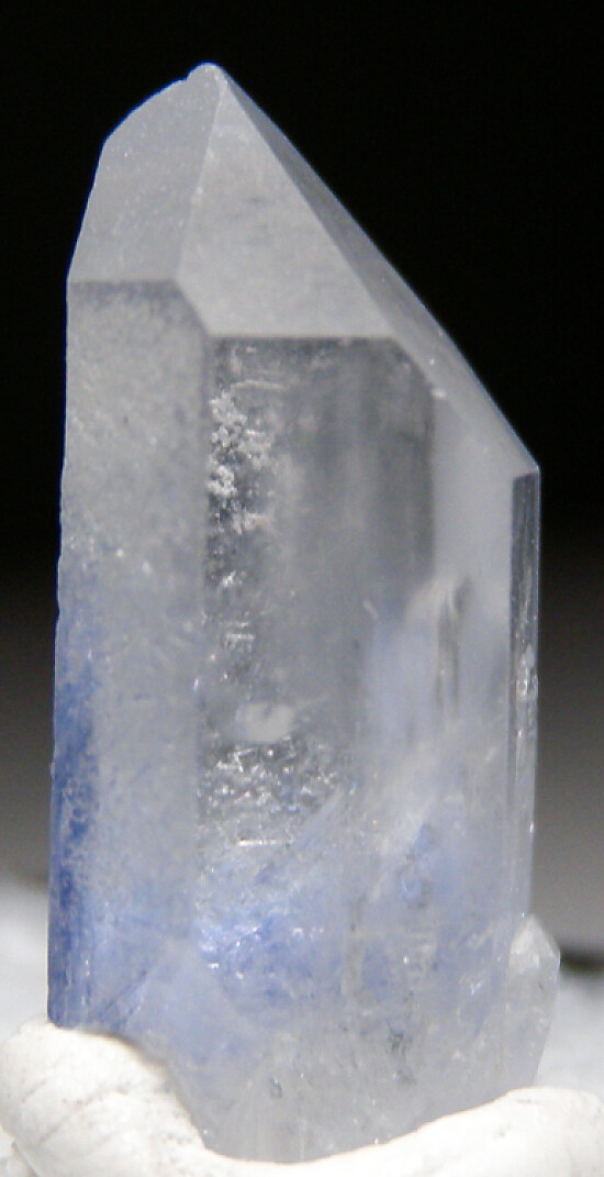 Single transparent Quartz crystals with inclusions of blue Dumortierite. Complete and undamaged crystal from old finds.