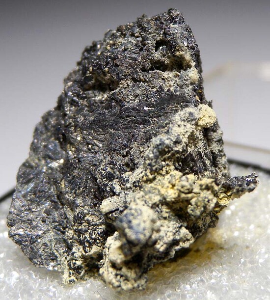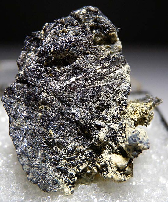 Mass of interlocking silvery metallic Bismuthinite crystals. Ex. Dennis Ewell collection.