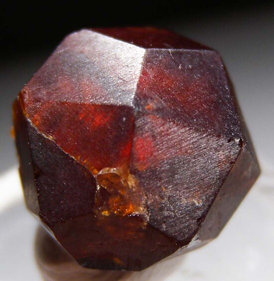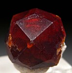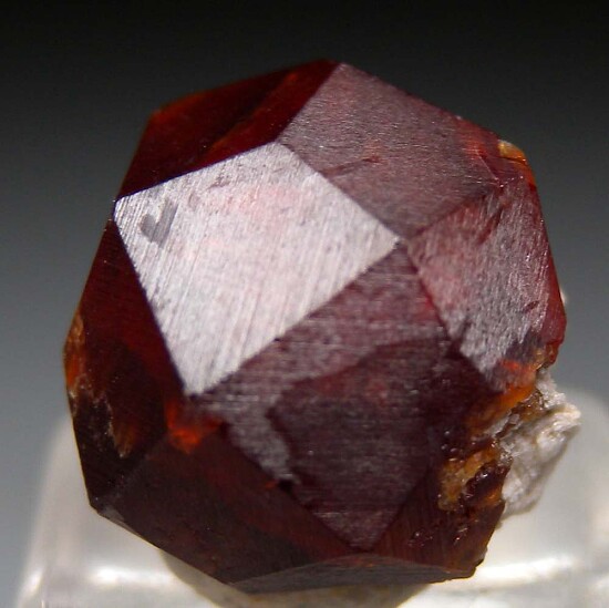 Well formed, large Spessartine crystal from a recent find of larger than normal sized Spessartine for this locality. The crystal is undamaged and mostly complete with a small amount of matrix on the bottom.