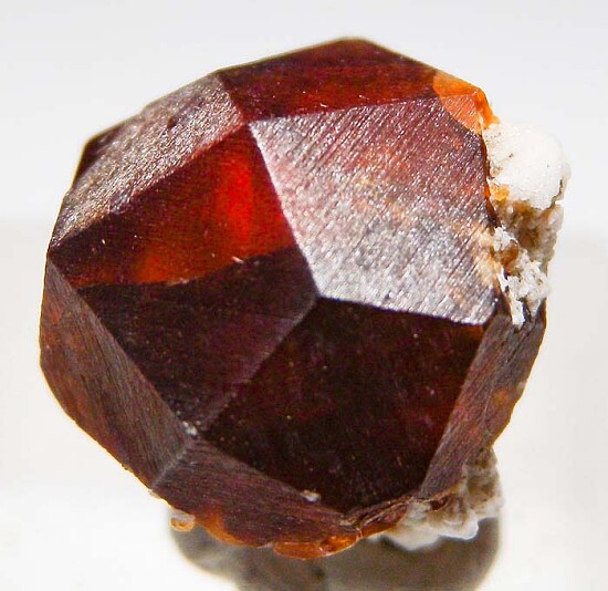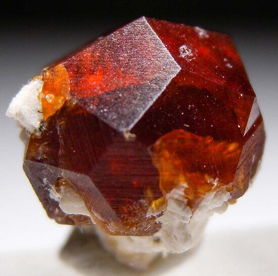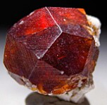 Undamaged single Spessartine on matrix from Tongbei. There was a recent find here with larger than normal sized crystals. This one is a beauty 1.1cm wide with deep orange/red color and a satiny surface luster.