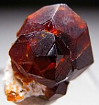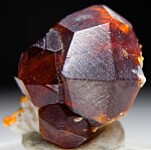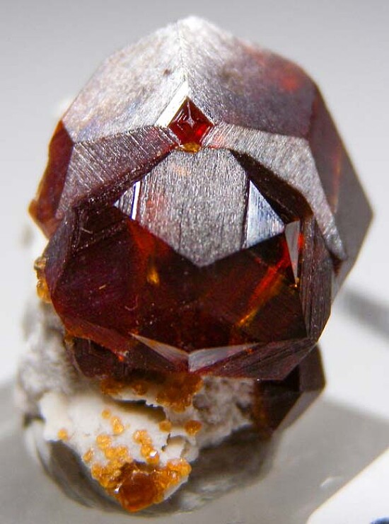 Cluster of large, satiny red Spessartine crystals on a msall amount of Feldspar matrix. From a recent find of larger than normatl crystals fromt his deposit.