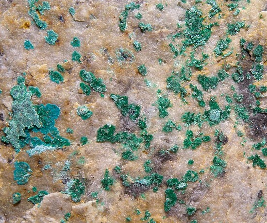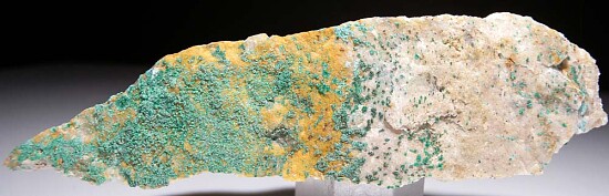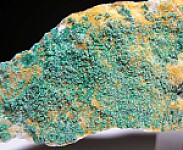 Green Brochantite crystals on all sides of a white Limestone matrix. Collected by John Sulzbach in May 2014 and comes with his personal collection label.