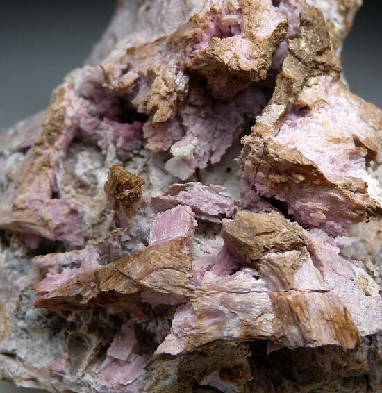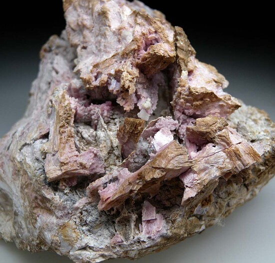 Well crystallized pink Inesite crystals on matrix from California. A large specimen of solid Inesite with crystals in areas. This is one of the few localities in the world to produce good Inesite specimens, and this is probably the best locality in terms of large, individual crystals. Ex. Chuck Trantham collection.