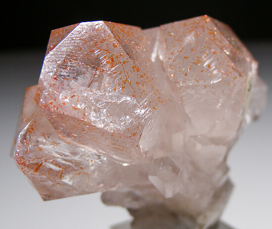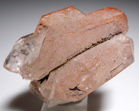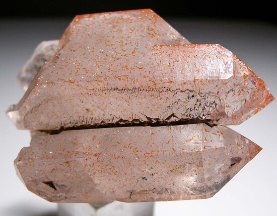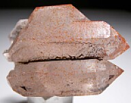Cluster of double-terminated Quartz crystals from Mexico. Out of an old collection, the label calls this Amethyst but it's Quartz with red Hematite inclusions. Shows an old price of $20.