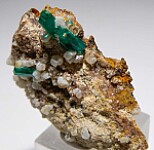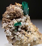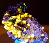 New find of Dioptase crystals with white Willemite crystals from near Mindouli. The Dioptase crystals reach 1.0cm in size. The Willemite glow yellow under UV lighting in the last photo.