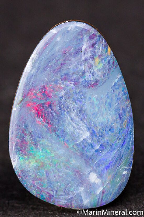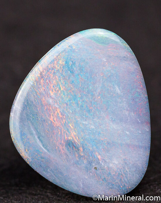 backing for stability. Well polished freeform cuts with primarily blue color with flashes of red, green, and yellow.