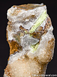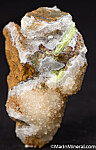 Silica rich matrix with Quartz crystals and areas of bright yellow Karpatite. Karpatite is an uncommon organic mineral, which is also fluorescent.