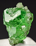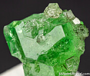 Cluster of gem quality Tsavorite crystals without matrix. Tsavorite is a green Grossular colored by chrome and vanadium. The cluster is composed of a central 1.1cm crystal with smaller attached crystals.