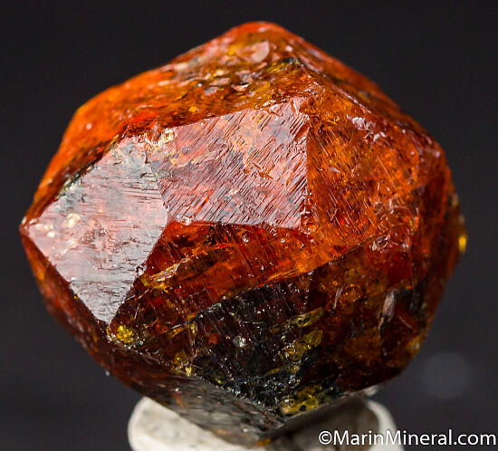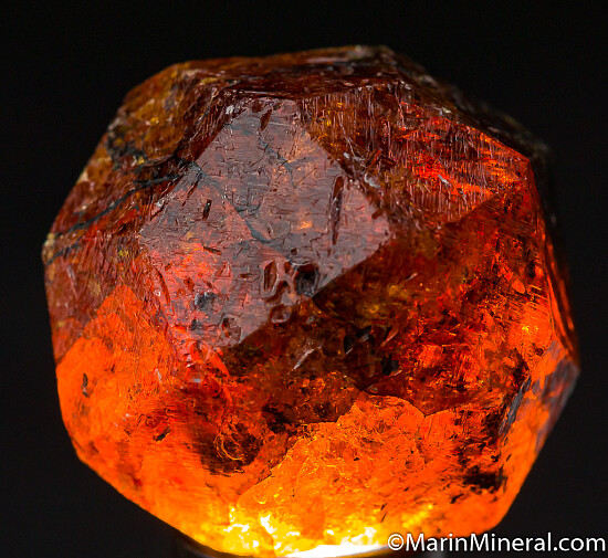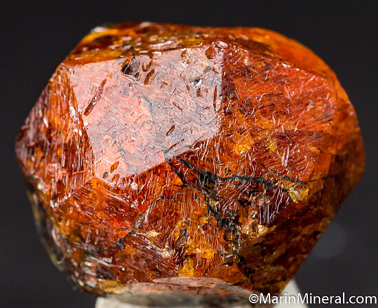 Complete 'citrus' orange Spessartine crystal from old finds in Tanzania. These were mostly found as partial or damaged crystals with complete crystals such as this much less common. Excellent form with no significant damage. Translucent with great color and transparent zones inside. Weighs 31.23 grams (about 156 carats).