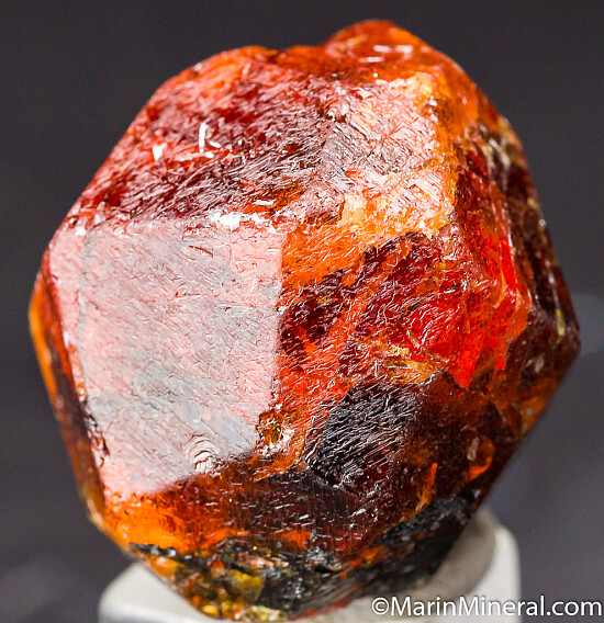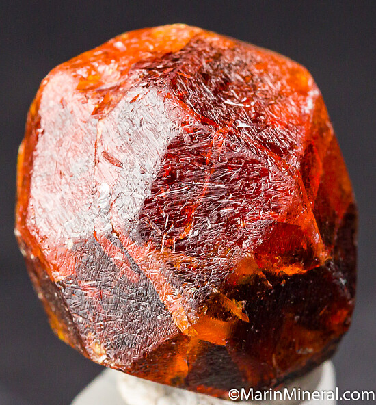 Complete 'citrus' orange Spessartine crystal from old finds in Tanzania. These were mostly found as partial or damaged crystals with complete crystals such as this much less common. Excellent form with no significant damage - just a couple insignificant small edge chips. There are both darker areas and areas of bright gemmy orange. Weighs 36.72 grams (about 183 carats). Valued at $500+.