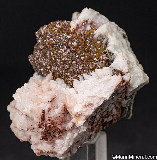 An isolated 4cm crystal of Tannantite covered by small crystals of brown Wulfeniteattractively set in crystals of white Dolomite. Ex. Willy Israel collection. Willy's old label indicates it was purchased from Clive Queit in 1979 for $1500.