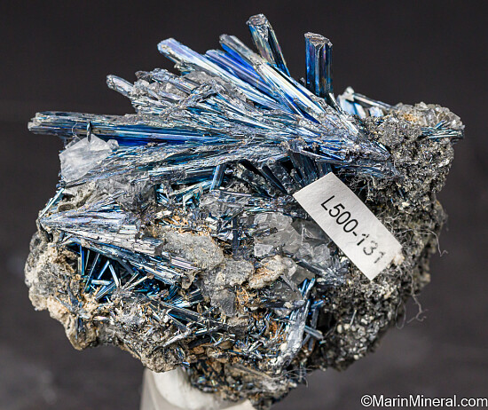 Metallic Stibnite crystals on matrix with white Calcite. An excellent example from this lesser known, defunct locality. The McLaughlin Mine is a former Au-Ag-Pb-Hg-Sb mine discovered 1865 and operated until 1945.