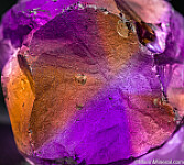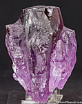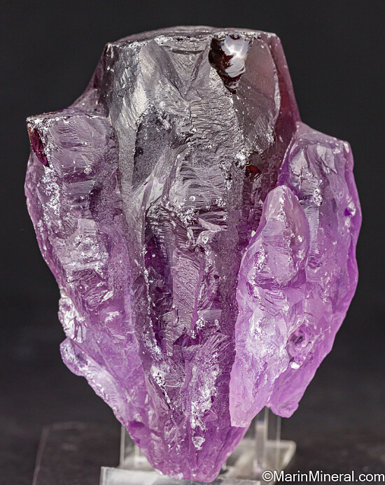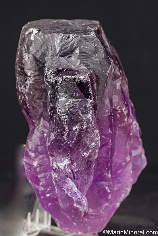 Large transparent crystal of Ametrine (Quartz that is part Amethyst and part Citrine). It has typical etched form with a flat, wide termination. When looking down from the top, six equally sized pie-shaped color zones are evident, 3 purple and 3 yellow. There are two small dings otherwise this is perfect and one of the better examples I've seen.