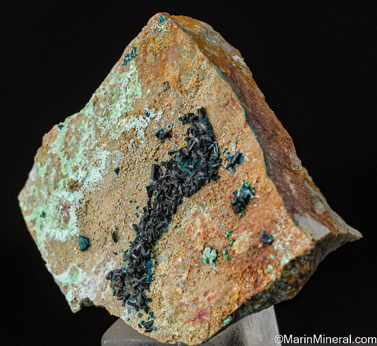 Deep navyblue Clinoclase crystals on matrix from the now defunct Majuba Hill Mine in central Nevada. Excellent, undamaged group of crystals well centered on matrix.