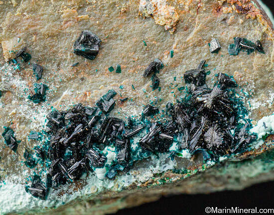 Deep blue crystals of Clinoclase on matrix from the now defunct Majuba Hill Mine. Clinoclase from this mine is famous for it's quality, some of the world's best.
