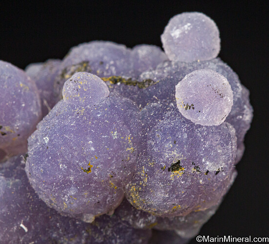 Sparkling cluster of interconnected spheres of purple Quartz var. Amethyst known as Grape Agate. Good spheres all around, complete all around and undamaged with sparkling luster. A beautiful pristine example of this unusual variety of Quartz.