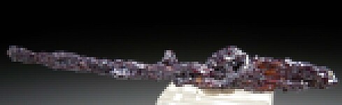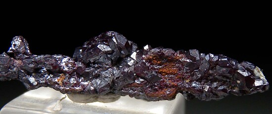Elongated Copper crystal coated by Cuprite crystals from the Ray Mine. The Copper crystal is almost entirely coated by the sparkling, deep red Cuprite crystals. Ex. Len Pisciotta collection and comes with an old hand written note indicating the specimen was old and from the period when the Ray Mine was exclusively an underground operation.