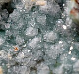 Shallow vugs lined with green Variscite covered by sparkling transparent crystals of Fluellite. Fluellite is a rare phosphate mineral and the world's best were found at this old Gold mine in Nevada. The presence of the Variscite makes this a more colorful example from the find. Ex. Len Pisciotta collection.