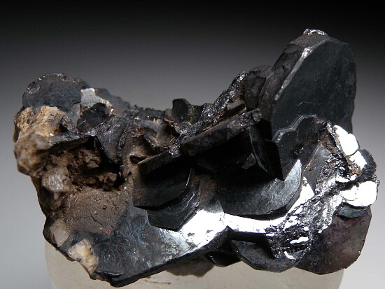 Cluster of flat, metallic Ilmenite crystals from Zagi Mountian in Pakistan. Individual crystals reach 2.5cm wide and 3mm thick. A minor amount of Rutile is also present. Ex. Len Pisciotta collection.