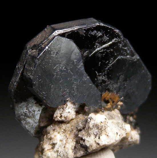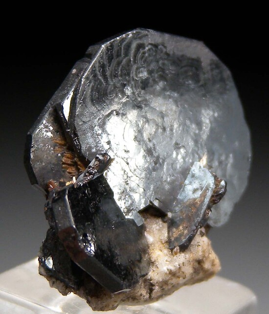 Cluster of flat, metallic Ilmenite crystals on a small amount of matrix from Zagi Mountian in Pakistan. Superb thumbnail for the species. A minor amount of Rutile is also present. Ex. Len Pisciotta collection.