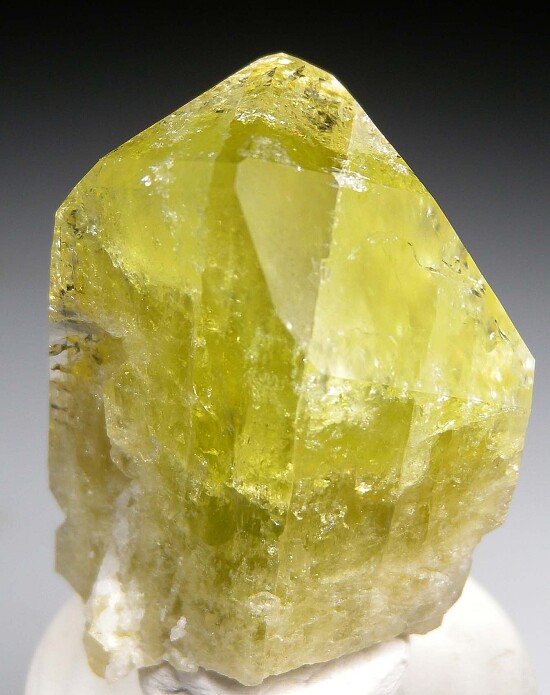 Large, complete single Brazilianite crystal. Excellent undamaged crystal with good luster, areas of transparency, and the yellow/green color these are known for. Ex. Len Pisciotta collection.