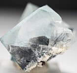 Intergrown pair of transparent Fluorite crystals from the famous Yaogangxian Mine in China. The Fluorite crystals are glass-like and water-clear with a light green color and contain fine needles of metallic Jamesonite. Better than photos.