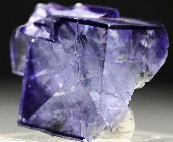 Transparent purple cubic Fluorite crystals from the famous Yaogangxian Mine in China. The Fluorite crystals are lustrous and transparent. The main crystal is 3cm across. These are getting harder to find and much more expensive in China now.