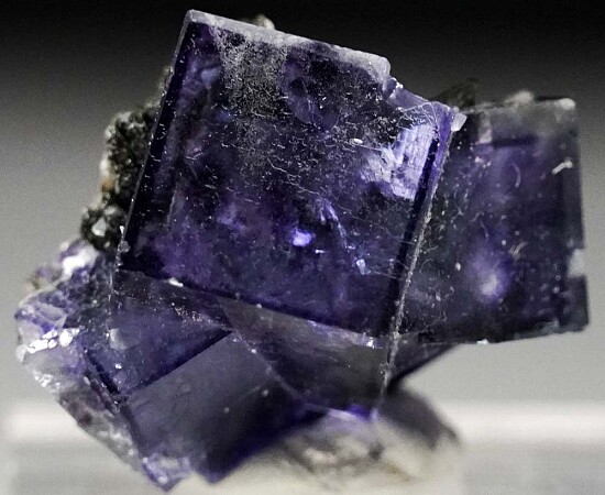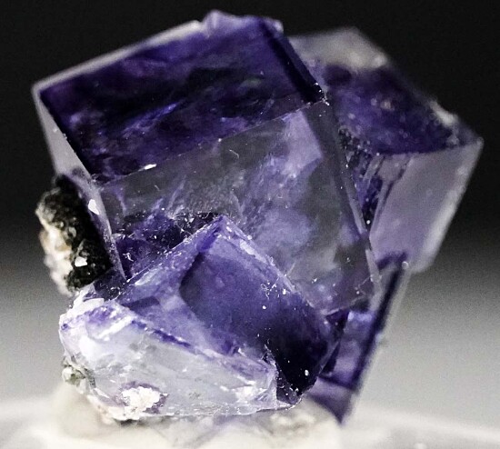 Cluster of transparent purple Fluorite crystals from the famous Yaogangxian Mine in China. The Fluorite crystals are lustrous and transparent and reach 1.8cm across.