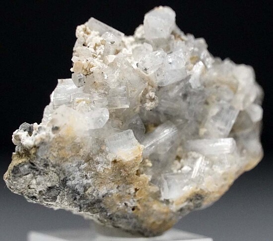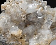 Colorless, translucent to transparent Thomsonite crystals in vug. The Thomsonite form prismatic crystals with flat terminations. Collected by John Sulzbach in October 2014.