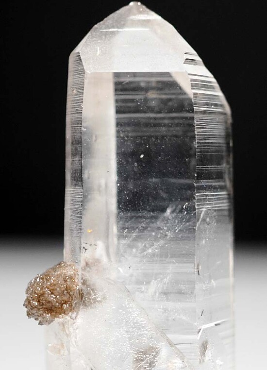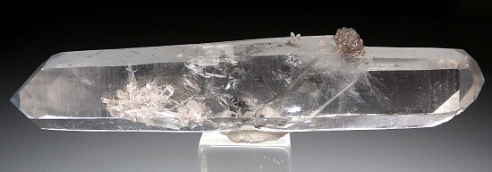 Superb, doubly terminated Quartz crystal from China. This is a long, slender transparent crystal well crystallized all around. Undamaged with sharp edges and typical black carbon inclusions. Ex. Jean Lee collection valued at $200.