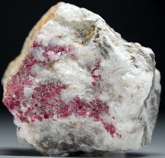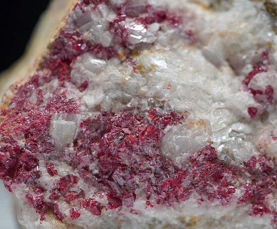 Bright red crystalline Cinnabar in white Calcite from Nevada.