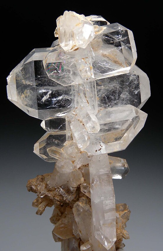 Stacked cluster of interconnected double terminated Quartz crystals. Complete and undamaged with a white faden line down the center. Ex. Len Pisciotta collection.