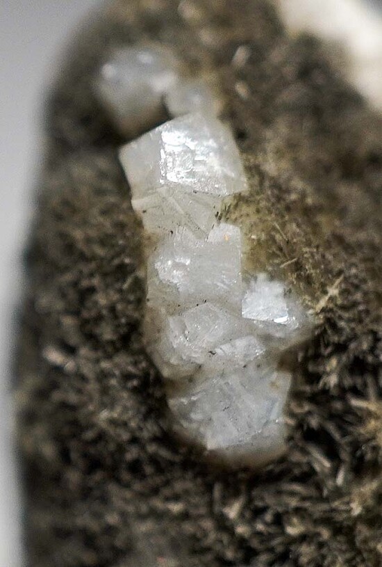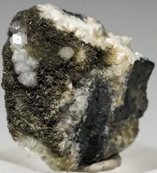 White Fluellite crystals with acicular Wavellite crystals on matrix. Good well isolated Fluellite crystals for the species. Fluellite is a rare phosphate mineral and the world's best were found at this old Gold mine in Nevada.