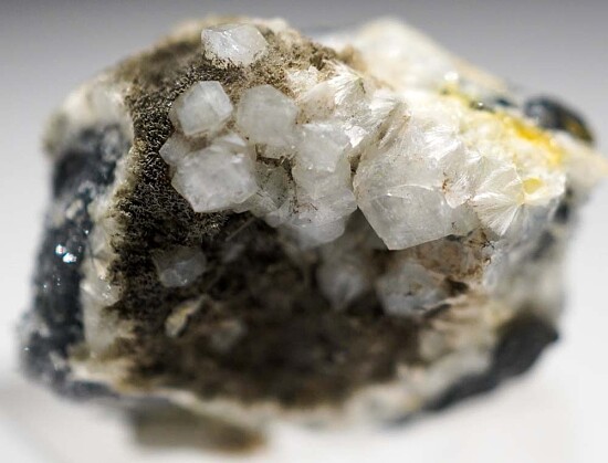 Fluellite crystals with acicular Wavellite crystals on matrix. Good large, well isolated Fluellite crystals. Fluellite is a rare phosphate mineral and the world's best were found at this old Gold mine in Nevada. Refer to the Mineralogical Record article on this important discovery.