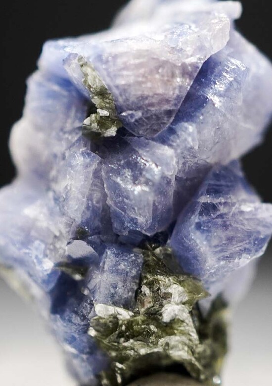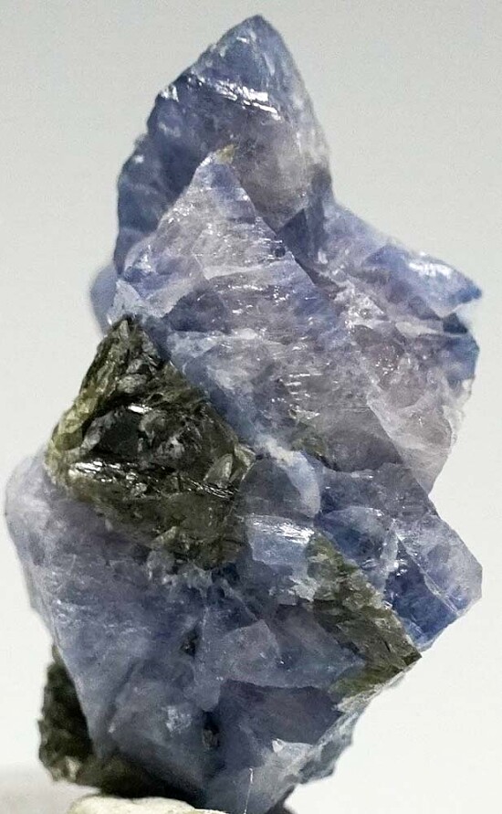 Blue to white crystals of rare Lawsonite with Glaucophane schist. Old specimen from the Type locality for the species, collected by Chuck Trantham back in 1968. Rare stuff! Ex. Chuck Trantham.