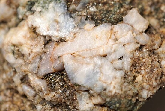 Blue to white crystals of rare Lawsonite in a Glaucophane schist matrix. A good sized piece with lots of crystals! Old specimen from the Type locality for the species, collected by Chuck Trantham back in 1968. Rare stuff! Ex. Chuck Trantham.